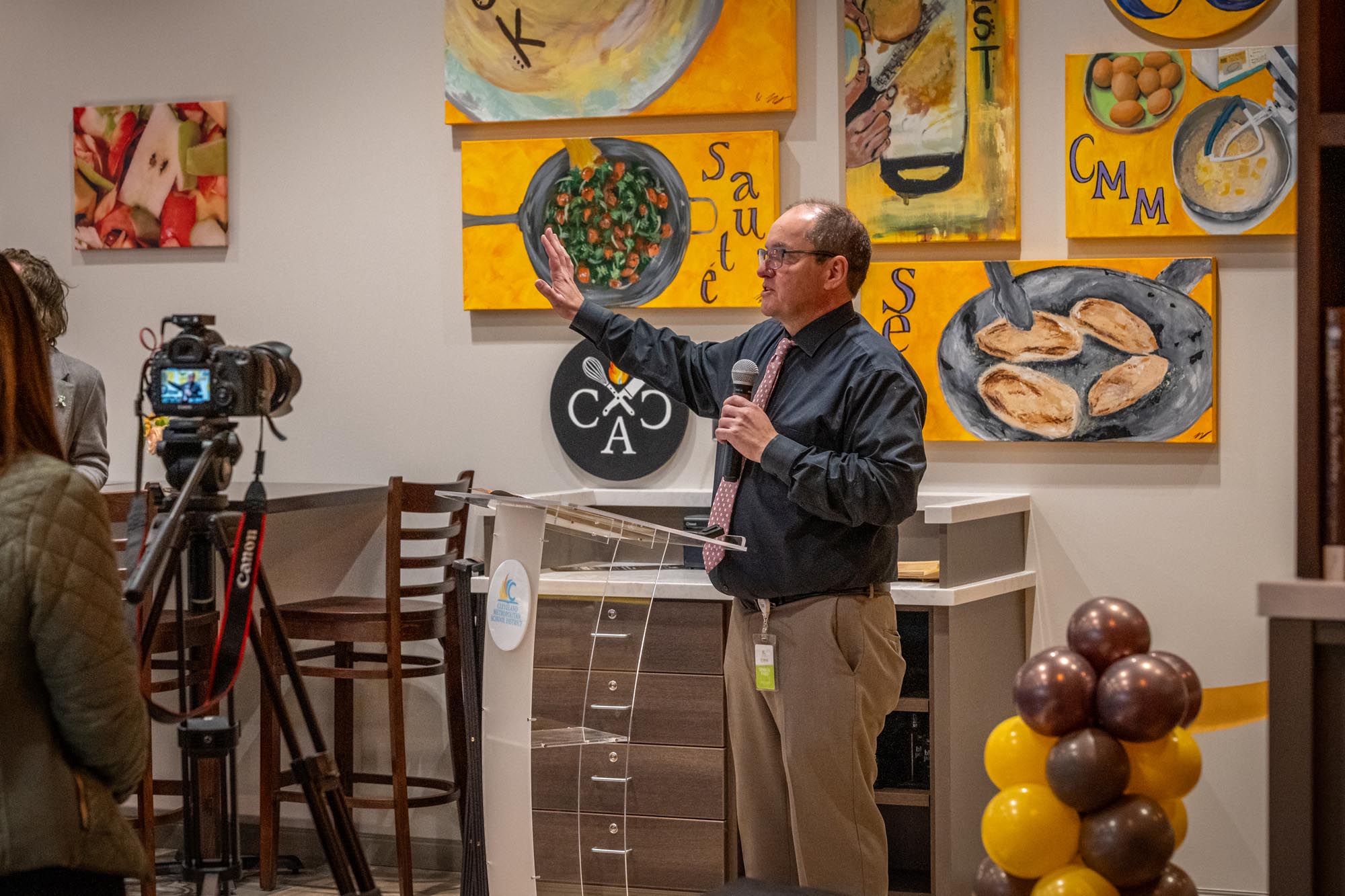 Local dignitaries, community members, staff, and students celebrated the ribbon cutting ceremony on February 3, 2023. The joyful event demonstrated the new space’s expansive capabilities and the students’ culinary skills as they prepared meals for invited guests. An honorary booth and plaque commemorated Former Superintendent Eric Gordon’s service in the school district from 2011 to 2023.